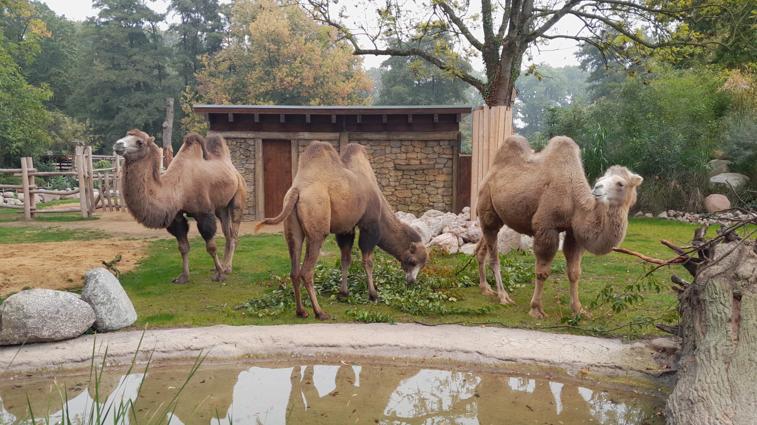 … dass Trampeltiere bis zu 120 Liter in zehn Minuten trinken können? Ihr Körper ist so konzipiert, dass sie möglichst wenig Wasser verlieren. Ihre Nüstern verschließen sich, so dass bei der Atmung wenig Wasser verloren geht. Außerdem können sie Wasser unter anderem in ihren Vormagen speichern.
