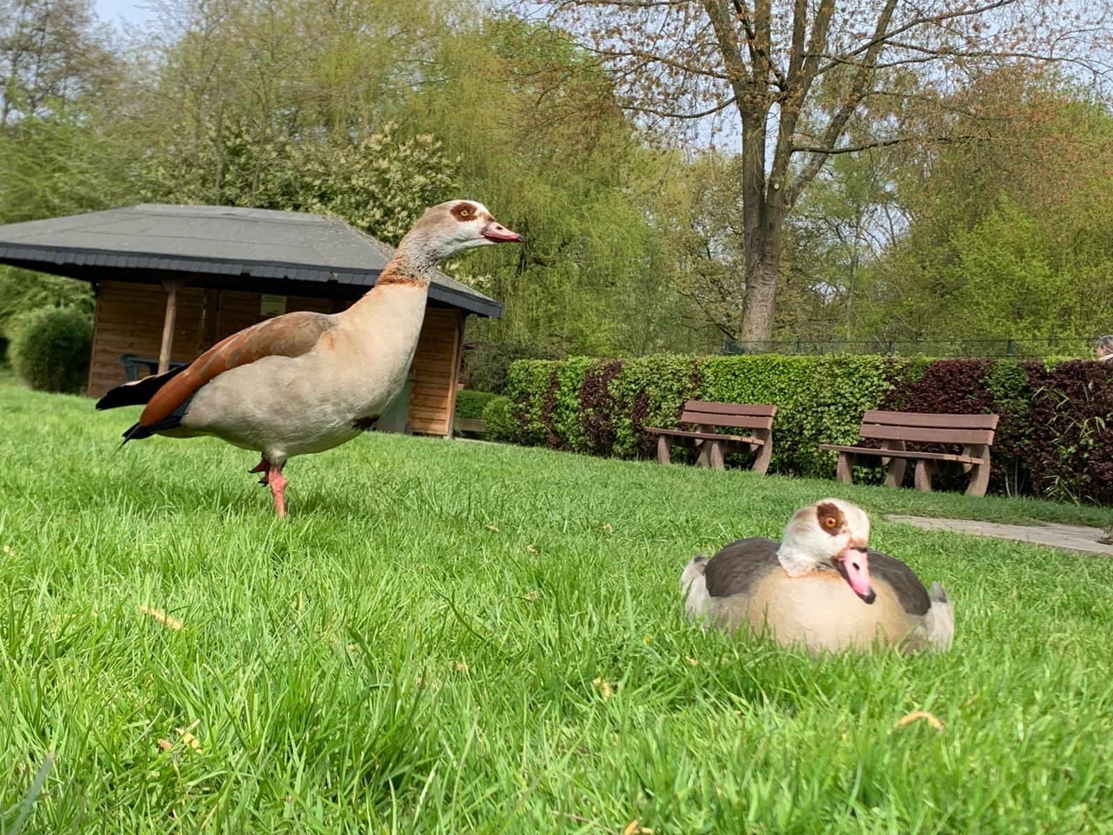 In den vergangenen Jahren sind die Bestände von einst allgegenwärtigen und sehr häufigen Vogelarten teilweise drastisch zurückgegangen. Rauchschwalben und Teichhühner mussten in Nordrhein-Westfalen deshalb in die Rote Liste der vom Aussterben bedrohten Tierarten in der Kategorie „gefährdet“ aufgenommen werden. Die Gründe liegen im Falle der Rauchschwalben in der intensiven Landwirtschaft und im Fall des Teichhuhns wahrscheinlich im Verlust geeigneter Bruthabitate begründet. Im Klever Tiergarten hingegen gibt es dutzende Brutpaare beider Arten. Bei der Führung können die Besucher mit etwas Glück die ersten Teichhuhn-Küken im Bereich der Wassergräben beobachten. Derweil werden die Rauchschwalben in den zahlreichen kleinen Ställen des Tiergartens noch in den Lehmnestern auf ihren Eiern sitzen.